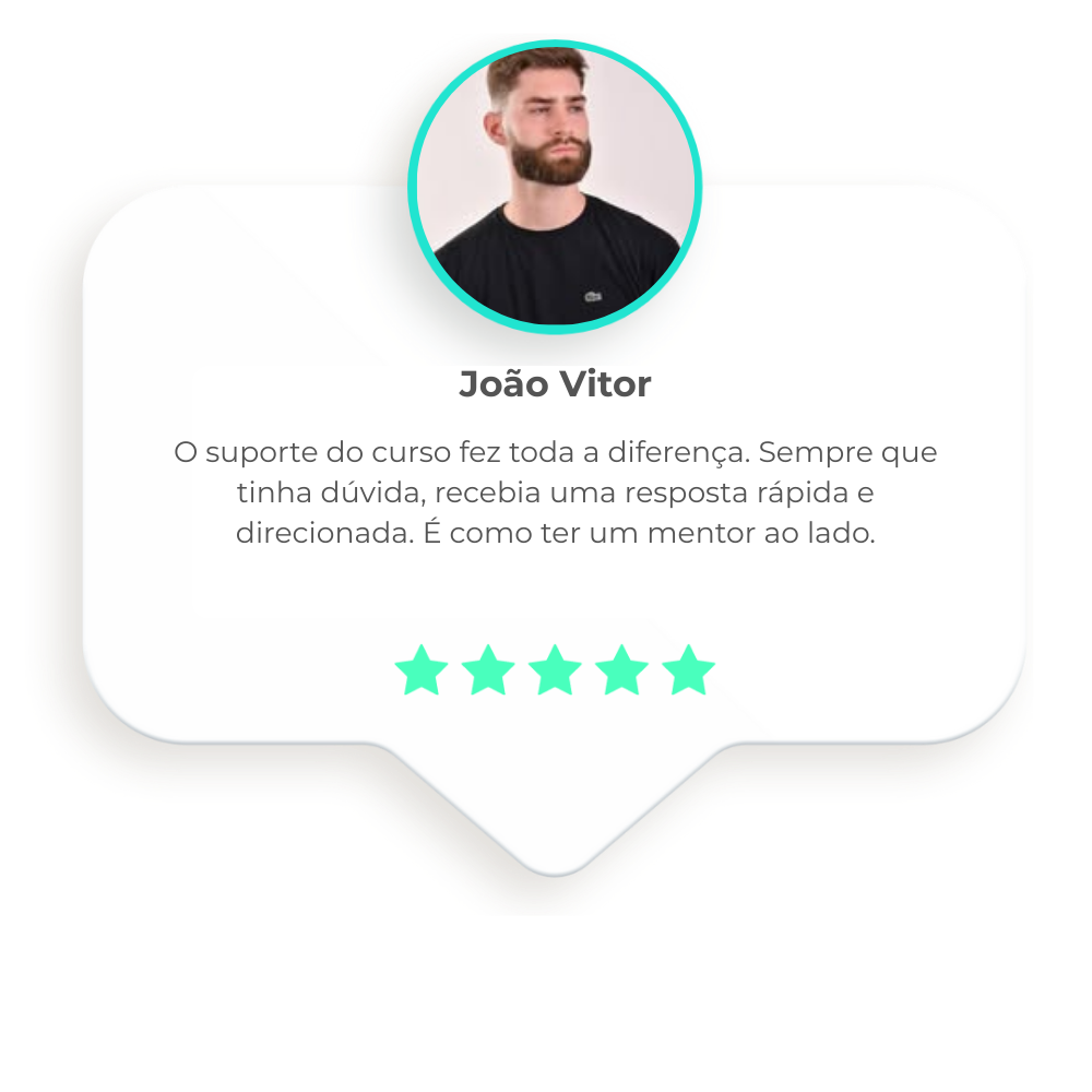 Você terá suporte direto comigo e poderá participar do grupo exclusivo de WhatsApp, onde pode tirar dúvidas e trocar experiências com outros alunos.